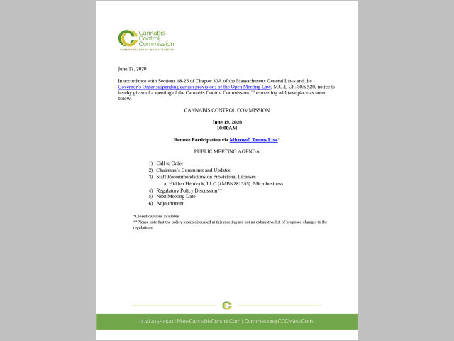 Posted bywsullivan33 June 17, 2020 Leave a comment on Notice of Public Meeting | June 19, 2020 | Cannabis Control Commission Share this: Share on X (Opens in new window) X Share on Facebook (Opens in new window) Facebook Like Loading...
